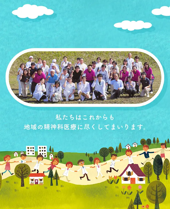 その後、増床し職員数を充足させ病棟ごとの機能分化を図るなどし、地域の精神科医療に微力ながら尽くしてまいりました。